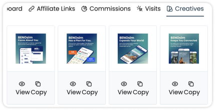 Download images or copy codes from your Affiliate [Dashboard >Creative] section. You can use these to promote on social media.